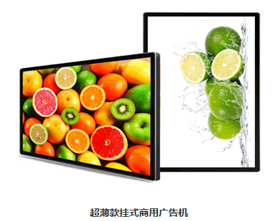 一、壁掛廣告機(直接安裝在墻壁,支持橫掛、豎掛、吊裝),超薄機身,自帶防盜設計。